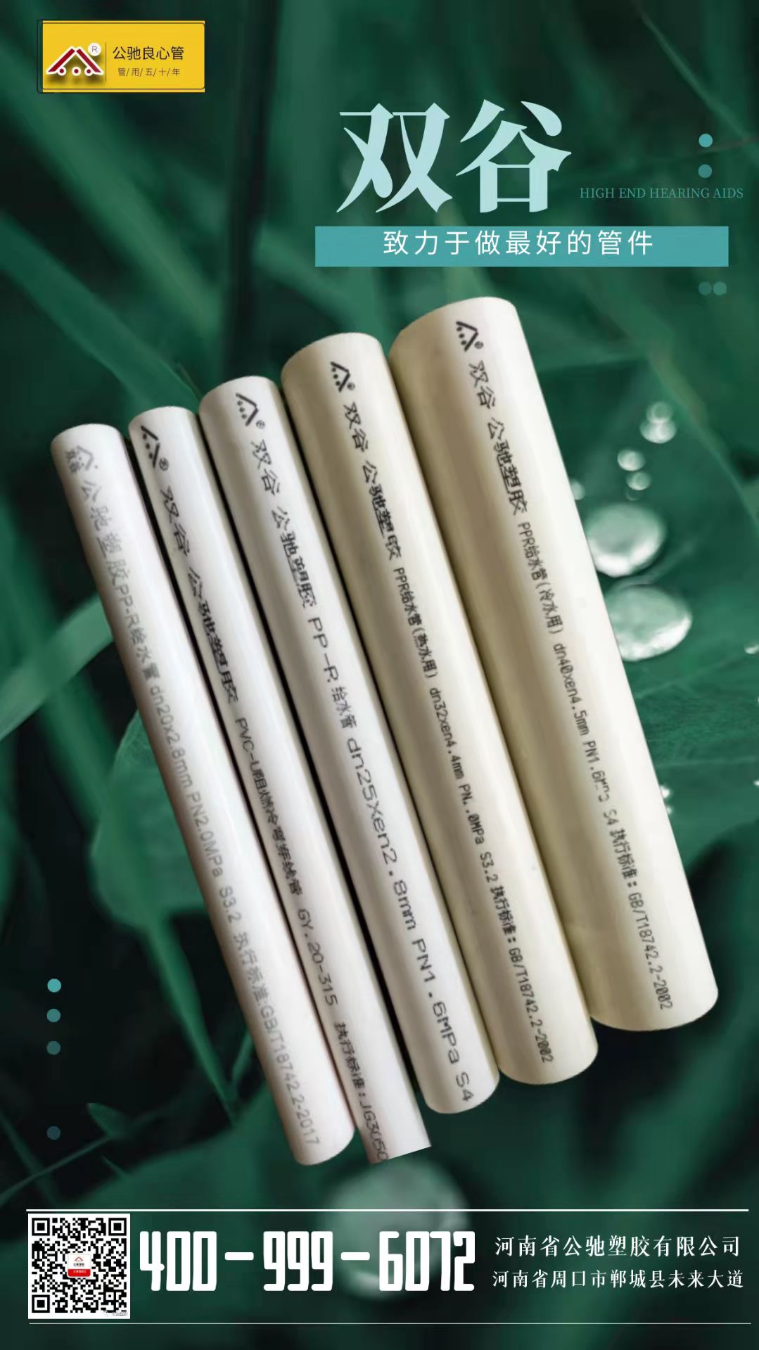 河南省公馳塑膠有限公司主要產品有PE給水管材、管件;HDPE排水管;PE、MPP、CPVC、電力穿線管;檢查井;PVC-U給水、排水管材、管件;電工導管;PP-R給水管材、管件;PE-RT地板輻射采暖管等百余個系列,數千個品種。